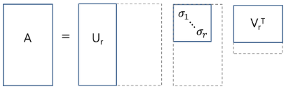그 외에도 위와 같이 대각 요소 중 0이 아닌 부분도 제거한 Compact SVD를 사용해 더 불 필요한 계산을 줄이거나, 큰 상위 특이값 $n$개 만을 남기는 Truncate SVD를 사용해 데이터 압축, 노이즈 제거의 효과를 보기도 한다.
